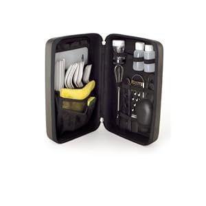 Product Description : Amazon.comSure, there's no kitchen sink, but the Kitchen 23 includes just about every utensil you need to fix a meal in the great outdoors. This all-in-one, 23-piece kitchen set comes with a bunch of handy prep tools, including a Glacier Stainless whisk, a Glacier Stainless grater, a 9.5-by-6-inch cutting board, and two 2.3-ounce squeeze bottles that are ideally sized for your secret sauces. Serving your meals is easy thanks to the telescoping spoon and spatula, which break down for more efficient transport. The Kitchen 23 set keeps your salt and pepper safe and free of clumps thanks to the waterproof salt-and-pepper shaker, which is integrated into a single package for space-saving convenience. The set even includes a 12-piece silverware set for your meals, with four knives, four spoons, and four forks. And cleanup is a breeze thanks to the scrubby sponge and camp towel. No more cleaning up with your T-shirt or paper towels. The Kitchen 23 set stores inside an attractive carrying case made of closed-cell EVA foam. SpecificationsMaterials: Stainless steel, co-polyester, acetal, and EVA foam Product use: Destination camping Dimensions: 12 by 7.5 by 4.3 inches (W x H x D) Weight: 2 pounds 4 ounces About GSI OutdoorsGSI opened its doors in 1985, after a small group of British Columbian siblings made their way down the West Coast to San Diego. Beginning with a few pieces of blue enamelware and a smattering of campfire accessories, GSI Outdoors grew through the years to include full design, manufacturing, sales, and marketing departments, all tasked with developing and marketing an ever-more-innovative line of outdoor cookware, tableware, and accessories. Siblings Don, Ian, and Kathy Scott eventually relocated to Spokane, Washington, where they continue to define innovation through the creation of unique, imaginative, and fun products that reassert their enthusiasm for the outdoors. GSI Outdoors is still a small, privately held company, with no obligation to shareholders, a corporate board, or anyone else aside from its customers and employees. Product Description : 215074 Features: Prep meals using the durable Glacier Stainless Whisk, Glacier Stainless Grater, cutting board, and 2 squeeze bottles ideal for your secret sauces Serve your camp-time meals with the Telescoping Spoon and Spatula that can be broken down for more efficient transport and are also safe on non-stick surfaces Keep your salt and pepper safe and free of clumps thanks to the waterproof Salt and Pepper Shaker that is integrated into one package for space-saving convenience Serve dinner for 4 with the 12-piece cutlery set to 4 knives, 4 spoons, and 4 forks No more cleaning up with your t-shirt or worse, wasteful paper towels, as this set includes a Camp Towel and Scrubby Sponge Keep everything secure and stored for your next culinary masterpiece in the EVA foam carrying case Specifications: Weight: 2 lb 4 oz Dimensions: 12 x 73 x 43 inches Material: EVA foam to acetal to co-polyester to stainless steel